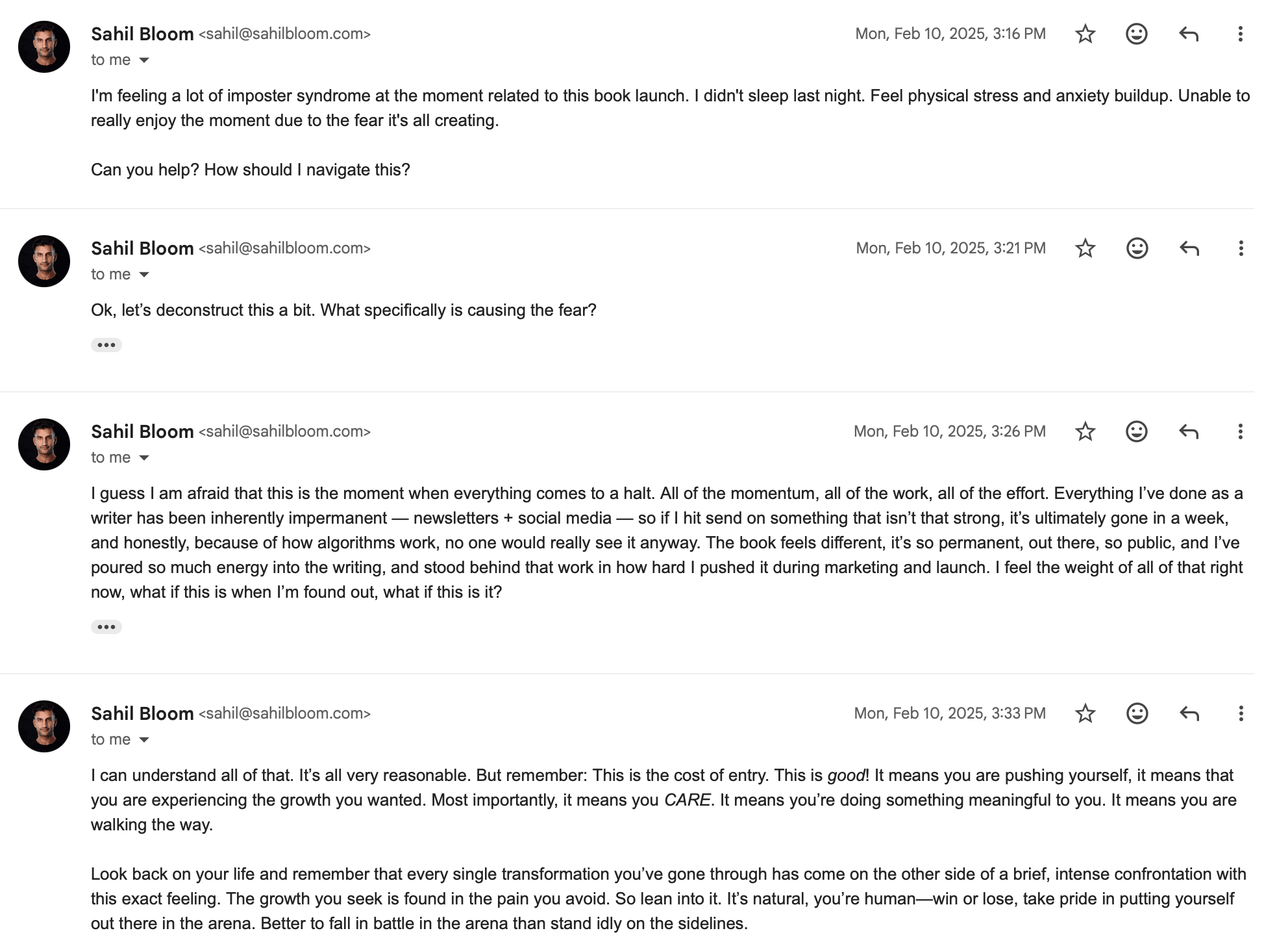 To give you a deeper view of what this might look like, here's one such coaching conversation as I was wrestling with imposter syndrome surrounding my 2025 book launch: